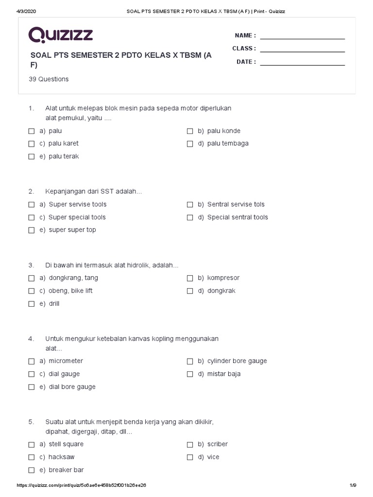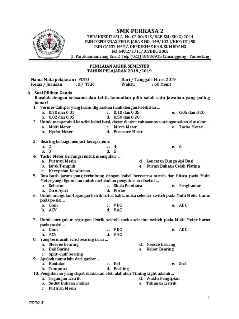 Soal Pdto X Cetak Docx Lembaran Soal Evaluasi Belajar Bersama Mata Pelajaran Pekerjaan Dasar Teknik Otomotif Semester I Ganjil Program Keahlian Teknik Course Hero from www.coursehero.com Belt kunci jawaban misal soal pekerjaan dasar otomotif kelas x Pllih satu jawaban yang paling banar! Pada contoh soal ulangan tengan semester (uts) / penilaian tengah semester (pts) pjok kelas 1,2,3,4,5,6 jenjang sd/mi. Soal pts kelas 5 tema 6 subtema 3 dan 4 dengan kunci jawaban pendidikan kurikulum. Soal penilaian tengah semester (pts / uts) ganjil kelas 7, 8. Berikut ini adalah contoh soal penilaian tengah semester (pts/ uts) mata pelajaran ppkn kelas 8 (viii) semester soal pts/uts bahasa inggris semester 1 smp/mts kelas 8 (viii) kurikulum 2013. Jenis soal yang kita sajikan di sini yaitu soal pilihan ganda multiple choice dan soal isian soal sudah dilengkapi dengan kunci jawaban. Soal pts berikut ini terdiri dari soal pilihan ganda dan isian singkat.